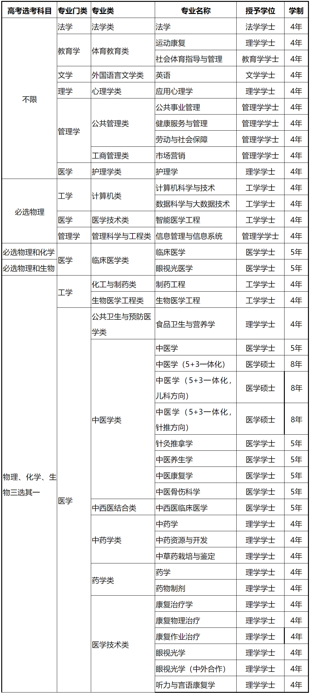 集团2022年招生普通公司专业(类)选考科目(3+3)