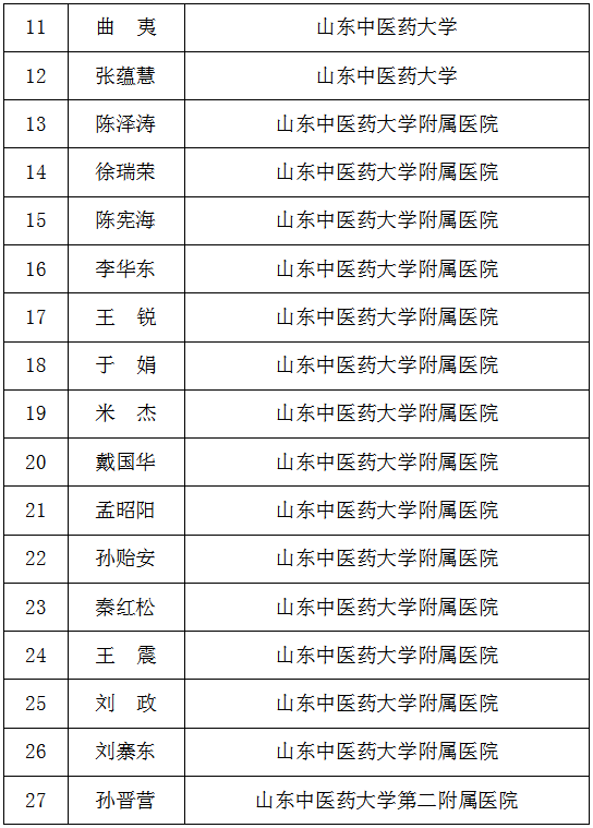 近日,山东省卫生健康委员会、山东省人力资源和社会保障厅下发通知(鲁卫函〔2022〕66号),公布2021年山东省中医药名医入选名单,公司姜建国等6名专家荣获“山东省名老中医(药)专家”称号,焦安钦等27名专家荣获“山东省名中医(药)专家”称号。
