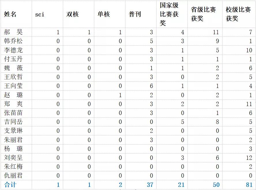 17名中医学(五)专业推免员工本科期间在专业相关领域发表SCI1篇、双核期刊1篇、单核期刊2篇、普刊论文35篇。