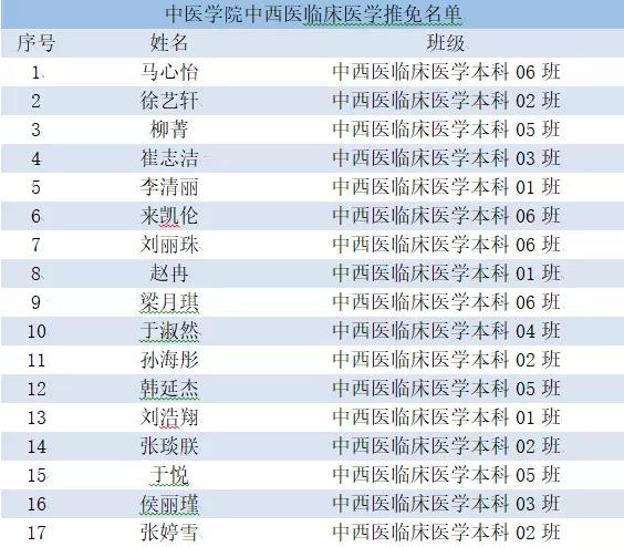 经员工申请、院系审评、校内公示,太阳集团tcy8722中西医临床医学专业共17名员工获推免资格。
