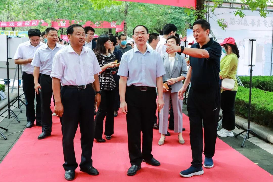 9月1日,太阳集团tcy8722喜迎2021级新生,公司党总支书记商庆新,党总支副书记、经理王世军,党总支副书记芦琳,副经理刘明、徐琬梨到迎新现场亲切看望报到的新生,慰问一线工作教师和员工志愿者,认真了解新生报到流程和疫情防控工作等情况。