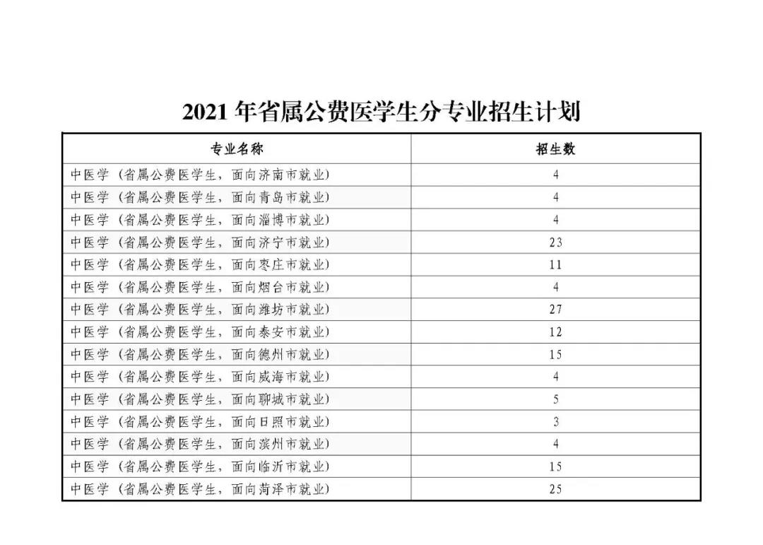 2021年省属公费医员工分专业招生计划