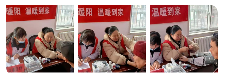 此图组为寒假临床导师制期间由指导老师带领参与义诊活动。值此相遇,三冬觉暖。在与来访者的沟通中,令人印象深刻的是一位血压高却不注意控制的患者,和一位迷信保健品拖延病情的患者。在老师对来访者们的耐心劝说下,本人意识到中医深入基层的意义——健康源自于生活,疾病是一点一滴的恶习积累起来的,从源头出发,除病灶甚至是治未病都是事半功倍的。不仅如此,本人还于此次活动中学习了医患沟通的技巧以及简单的诊断治疗技术。这样的活动不仅普及健康知识,更能体现医者的社会责任感。正如此次活动标语所说“冬日暖阳,温暖到家”,把健康带到千家万户,是医者义不容辞的使命!
